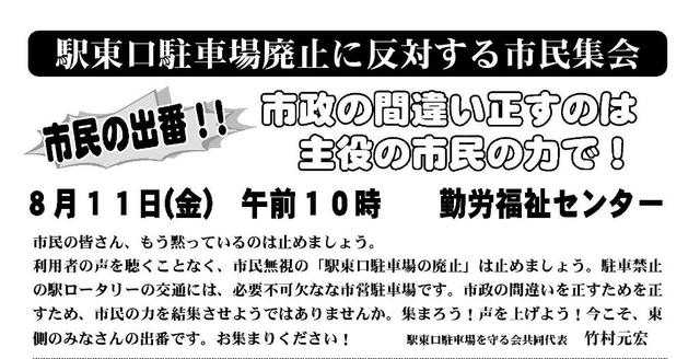 8月11日「駅東口駐車場廃止に反対の市民集会」が開催される。集まれ!怒れ!市民の出番です。 - 四輪 ...